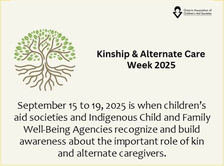 September 15 to 19, 2025 is Kinship & Alternate Care Awareness Week, when children’s aid societies and Indigenous Child and Family Well-Being Agencies recognize and build awareness about the important role of kin and alternate caregivers.